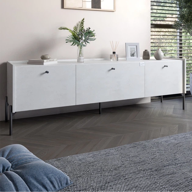 Тумба під телевізор на 3 шухляди LION Wood з чорними ніжками 180x50x40 см Німфея Альба (білий) (LION-043102)