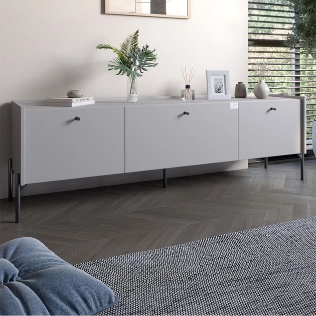 Тумба під телевізор на 3 шухляди LION Wood з чорними ніжками 180x50x40 см Самоа Димчастий (LION-043104)