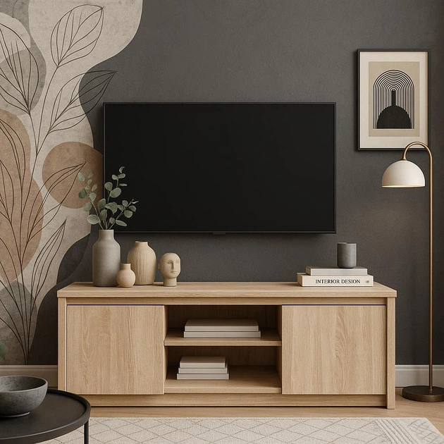 Тумба під телевізор тв плазму 55 дюймів 127 см підлогова з дверцятами без ручок в спальню вітальню зал в сучасному стилі дуб