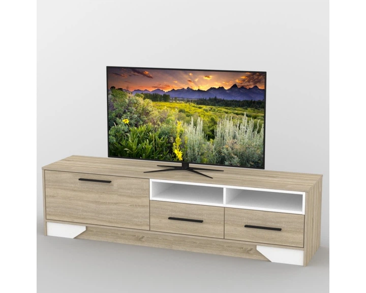 Тумба під телевізор у вітальні з ДСП, Крайка ПВХ ТВ-308 Тиса меблі Дуб сонома/Білий