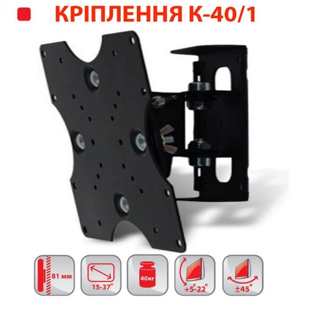 Кронштейн PROinstal LED LSD PDP 14-42 до 25 kg, поворотна Black