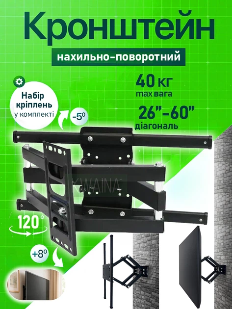 Кронштейн для телевізора 26-55'' з поворотом, до 50 кг, на стіну RT002 / Настінне кріплення тримач для ТВ (L)