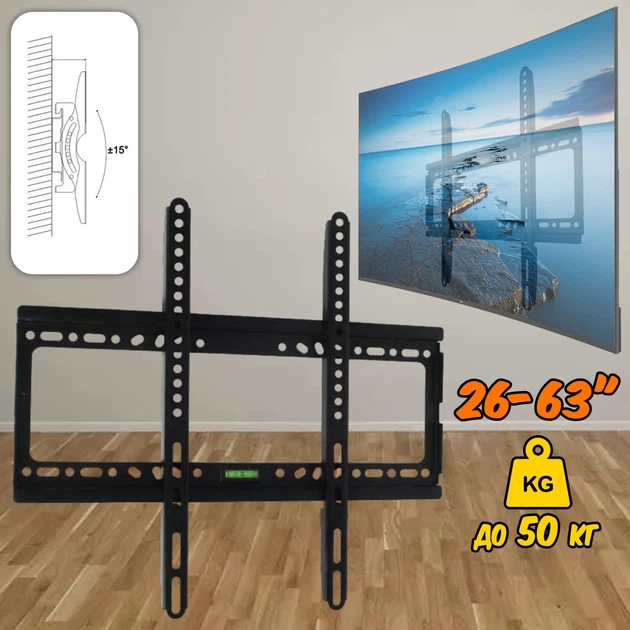 Настінне кріплення для телевізора або монітора V-Star 26-63", -15°/+15°, вбудований рівень, навантаження до 50кг Black