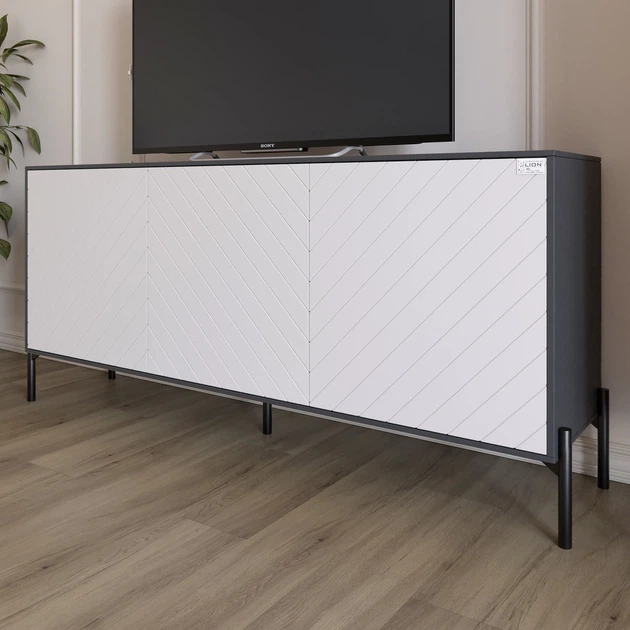Тумба під телевізор із чорними металевими ніжками LION Амарант 168x40x76,5 см Антрацит/Білий (LION-043003)
