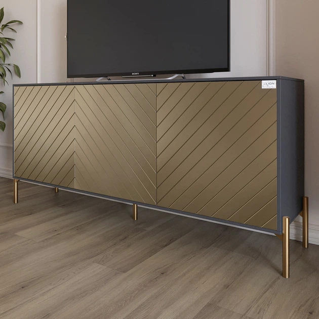 Тумба під телевізор із золотими металевими ніжками LION Амарант 168x40x76,5 см Антрацит/Графітовий (LION-043063)