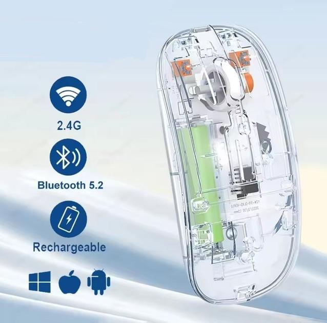 Бездротова прозора акумуляторна мишка Dual-mode mouse 2.4 ГГц+Bluetooth 5.0