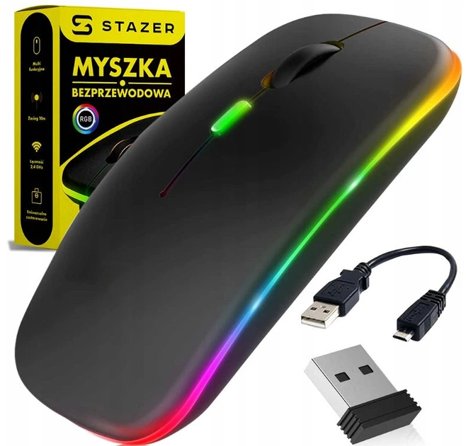 Бездротова ігрова мишка безшумна з вбудованим акумулятором T2 RGB USB Charge+Bluetooth Black