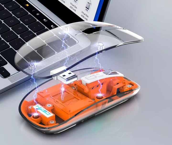 Прозора бездротова мишка BT Recharge з подвійним під'єднанням Bluetooth і 2.4G, сучасний дизайн