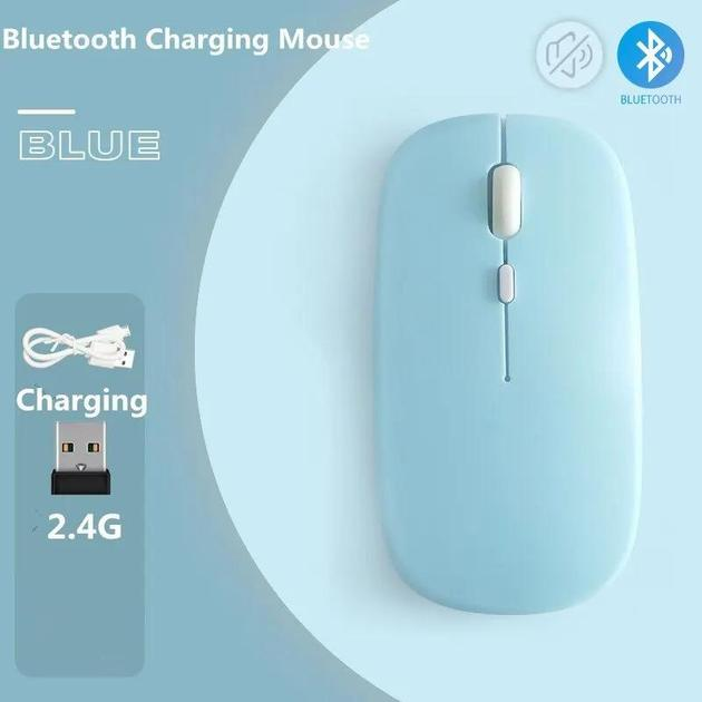 Безпровідна мишка AppStyle blue Bluetooth + 2.4G USB — тиха, з подвійним режимом підключення,блакитна
