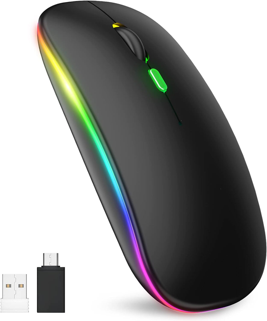 Бездротова миша Bluetooth, що перезаряджається з RGB підсвічуванням 2,4 ГГц Matte Black