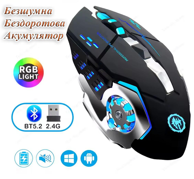 Бездротова Ігрова Миша T-Wolf X8 Чорна, 3200 DPI , 2.4G, Bluetooth