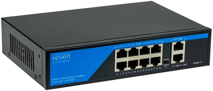 Комутатор Seven P7328G 8*100 Мбіт/сPoE / 2*Uplink/1 Гбіт/с / для небольших систем видеонаблюдения