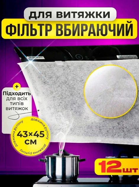 Фільтр для витяжки кухонної 43х45см всмоктувальний 12шт фільтр жиропоглинаючий для кухні універсальний BRS