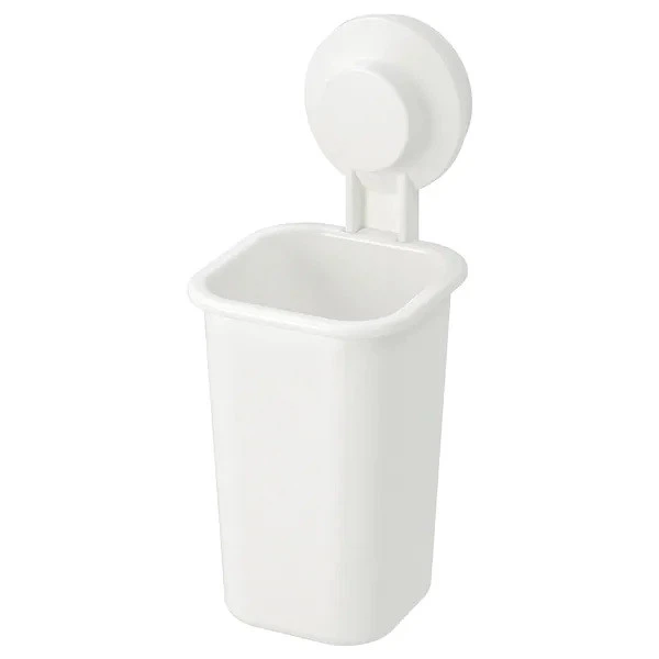Тримач-склянка для зубної пасти та щітки IKEA TISKEN на вакуумній присоску білий 803.812.94