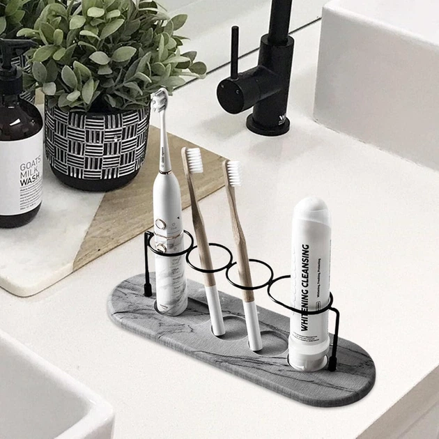 Органайзер для зубних щіток і косметики з дренажною підставкою з діатомітової глини, 30100.9 см Сірий (4074-G-B)