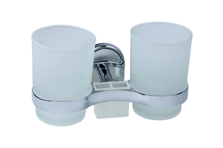 Стакан для зубних щіток KRONER Elbe CV022868 подвійний округлий скляний хром