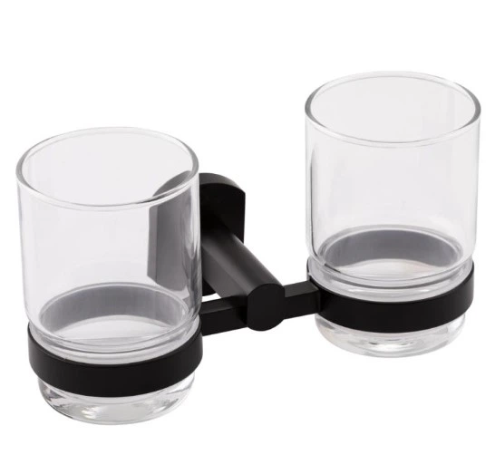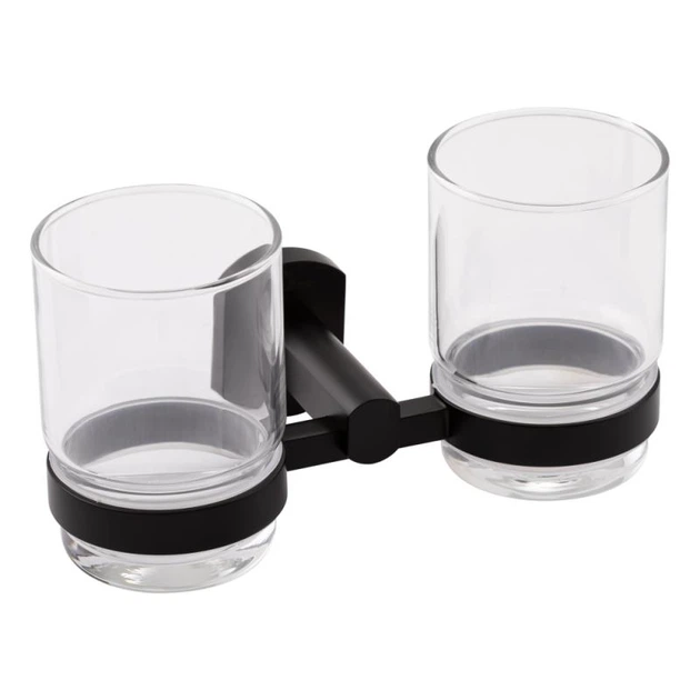 Склянка з тримачем Qtap Liberty настінна підвійна QTLIBBLM1155 Black