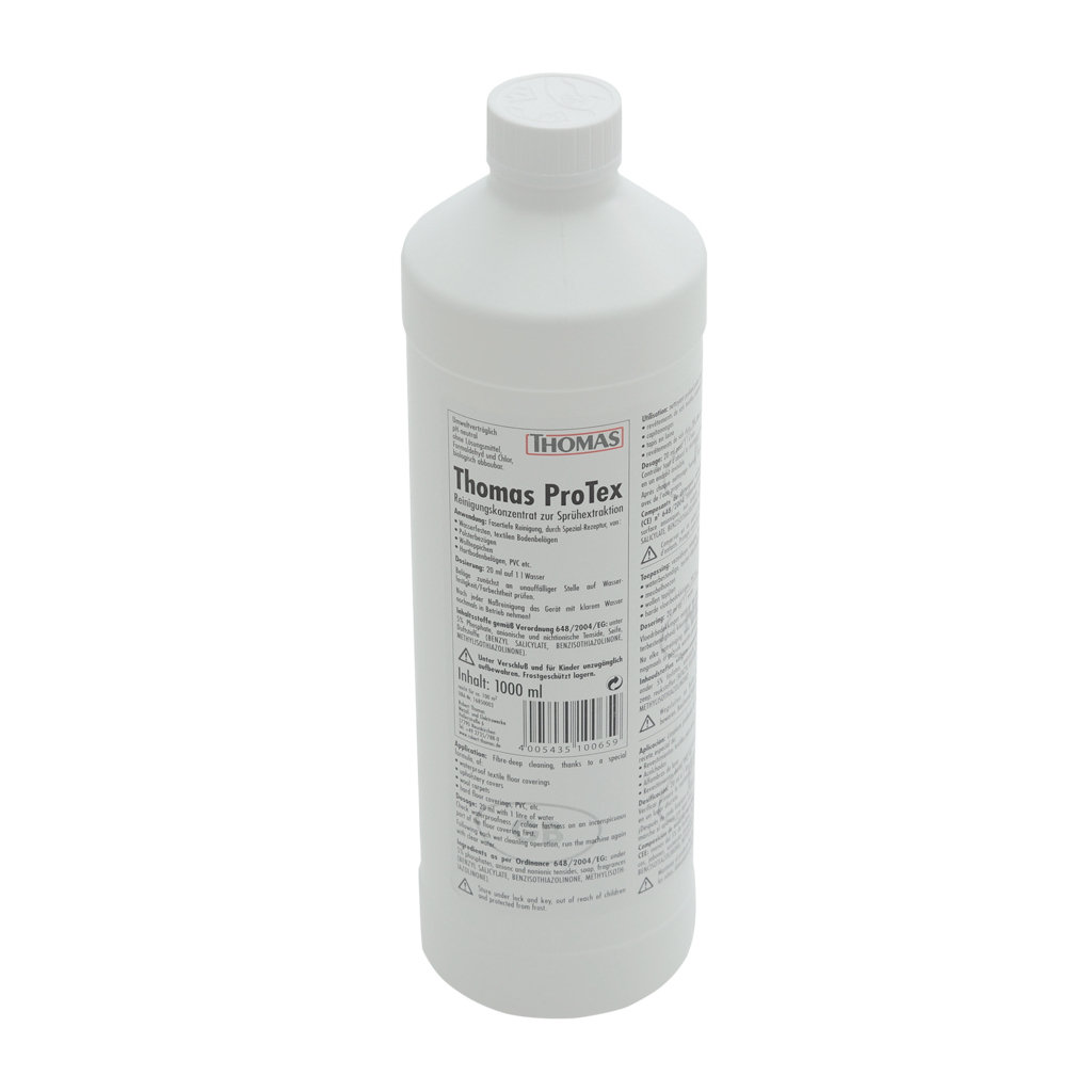 Використання мийного концентрату Thomas ProTex робить вологе прибирання текстильних поверхонь ще ефективнішим. Після вологого чищення з цим засобом килимові покриття і м'які меблі будуть мати такий самий добрий вигляд, як першого дня після купівлі. Як і всі мийні засоби Thomas ProTex є гіпоалергенним і абсолютно безпечним. Підходить до всіх мийних моделей пилососів Thomas.