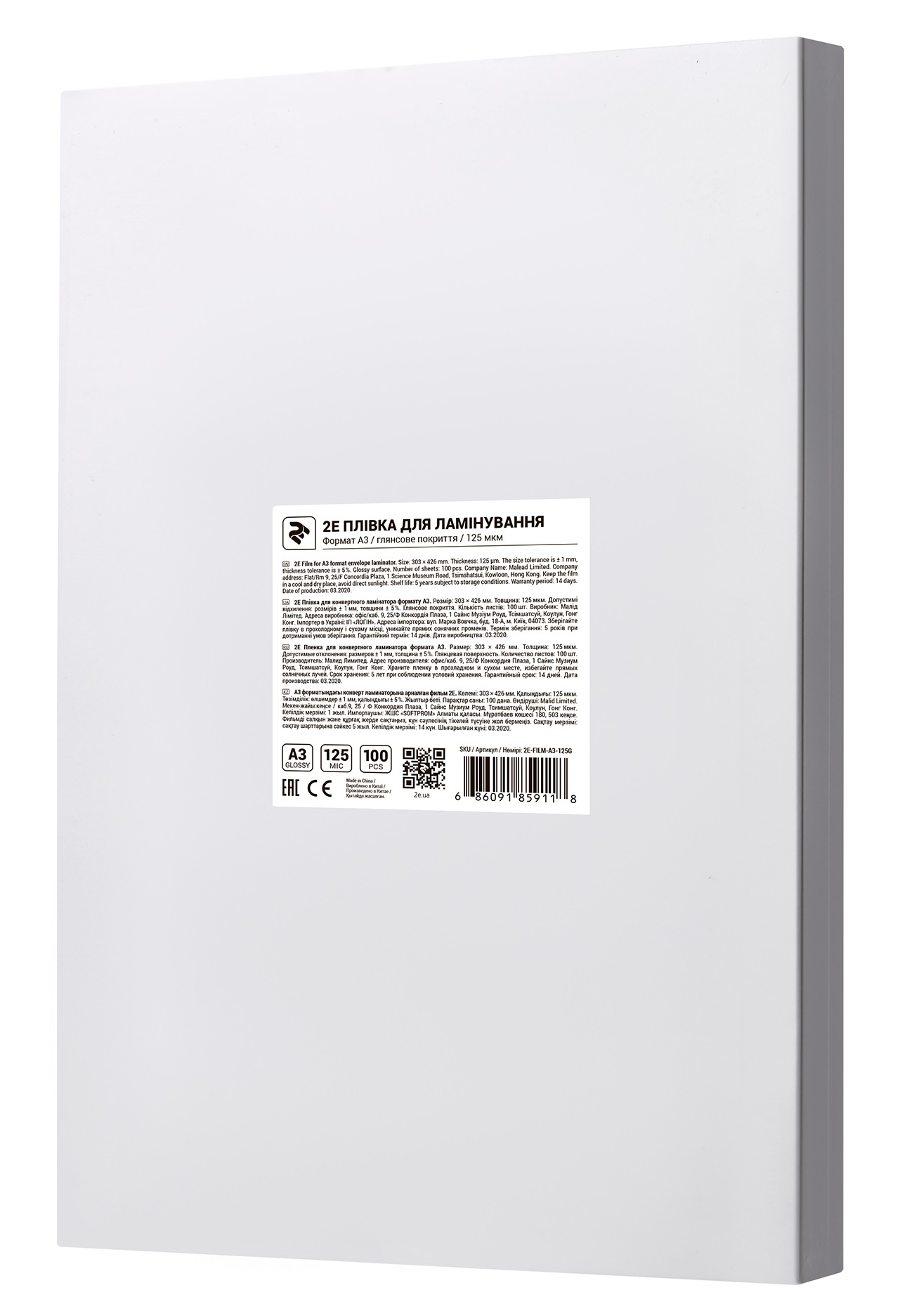 Плівка для ламінування, А3, 125 мкм, глянсова, 100 од, 2E (2E-FILM-A3-125G) 204994