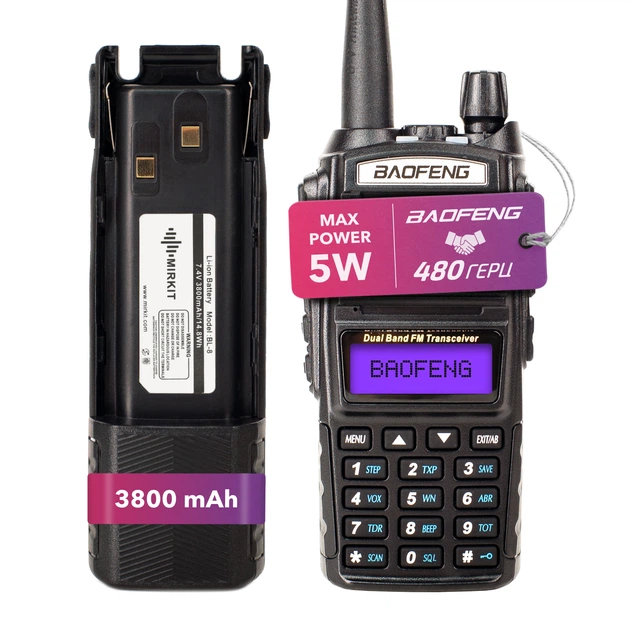 Комплект Рація Baofeng UV-82 5W + Гарнітура + Ремінець на шию + Акумуляторна батарея Baofeng BL-8 3800 мАг