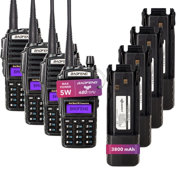 Комплект Рація Baofeng UV-82 5W 4 шт + Гарнітура + Акумуляторна батарея Baofeng BL-8 3800 мАч 4 шт + Ремінець на шию
