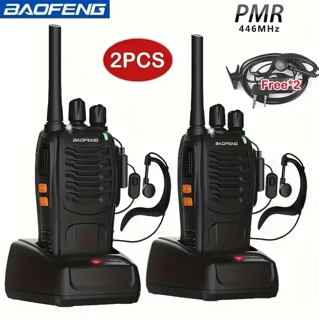 Набір із двох рацій BAOFENG BF-88E PMR 446 MHz із зарядними станціями та гарнітурами (чорні, 16 каналів)