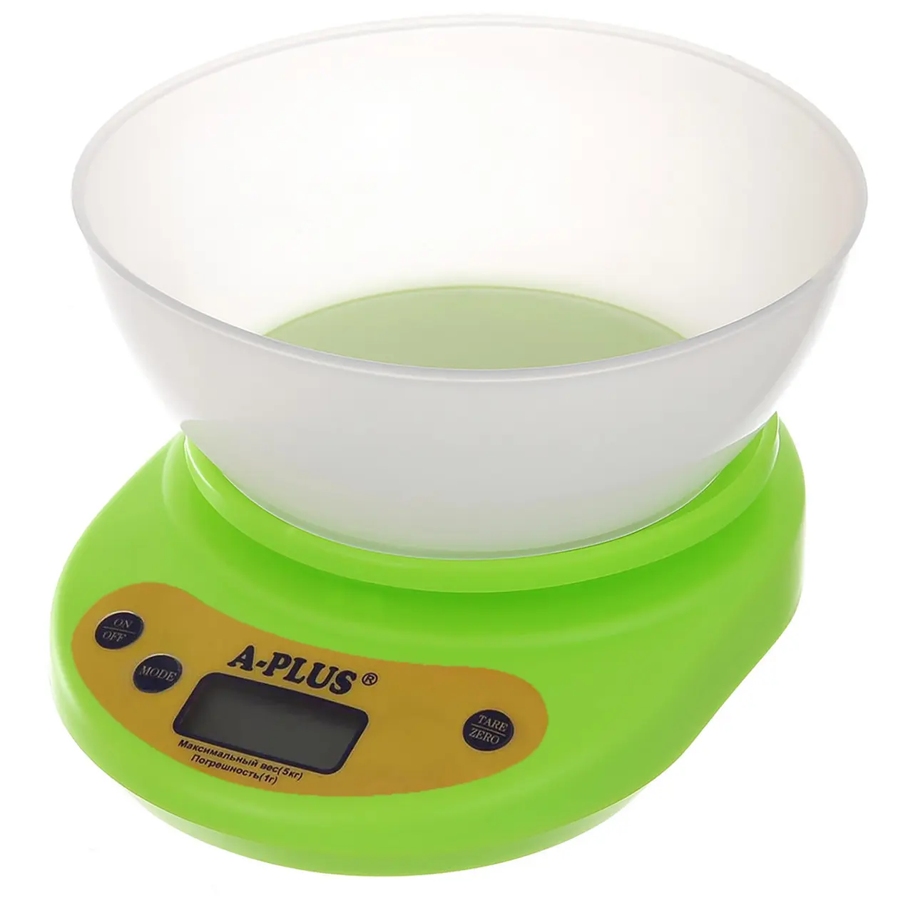 Ваги кухонні електронні з чашею до 5 кг SC-1656, A-Plus Салатовий 87391