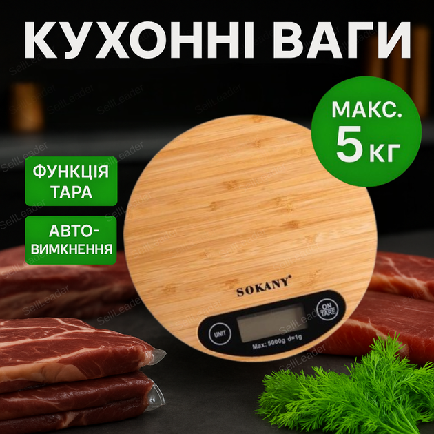 Кухонні ваги електронні до 5кг Sokany SK-19024 настільні для кухні без чаші на батарейках автовимкнення
