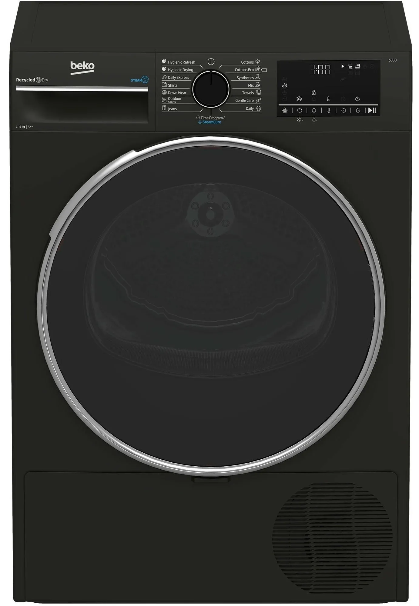 Suszarka Beko b300 BM3T3823WBW SteamCure Slim 47cm 8kg — компактна сушильна машина з тепловим насосом, призначена для ефективного та дбайливого сушіння білизни об’ємом до 8 кг; тонкий корпус 47 см дозволяє встановлення в обмеженому просторі і монтаж на пральну машину. Тепловий насос знижує енергоспоживання, датчик вологості і вибір ступеня/часу сушіння запобігають пересушуванню, а програма «освіження»