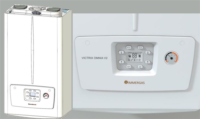 Газовий котел Immergas Victrix Omnia V2 - це сучасне, високоефективне рішення для опалення та гарячого водопостачання, що поєднує в собі інноваційні технології, компактність і надійність, притаманну італійському бренду Immergas. Особливості: Підключення за стандартом DIN. Новий високоефективний монотрубний конденсаційний модуль ηs 94%. Працює на метані, зрідженому нафтовому газі або 20% суміші