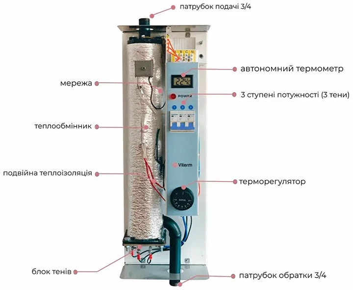Водогрійний із потужністю 7,5 кВт Viterm трифазний одноконтурний електричний котелBK19014