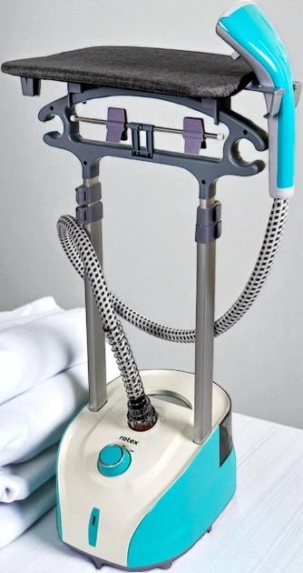 Відпарювач ROTEX RIC-S SUPER STEAM із телескопічною стійкою 2000 Вт із 2 режимами потужності для одягу та речей бірюзово-біл