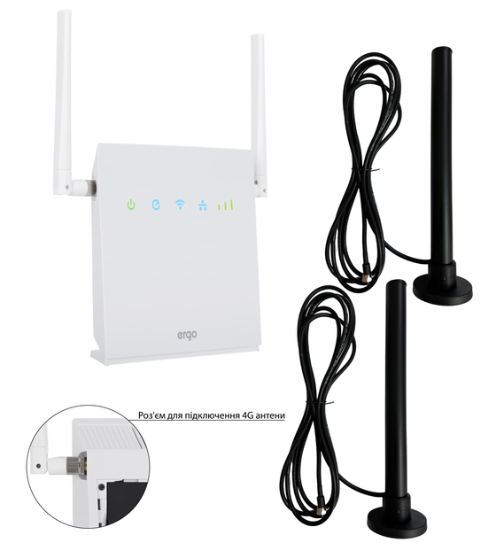 Універсальний мобільний комплект: ERGO 4G Wi-Fi Router R0516B & Всепогодні антени MobileGuard на магніті