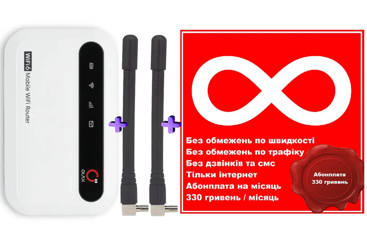 Портативний роутер Olax MF985 WI-FI 3G 4G з акб 3000mAh + Дві антени та сім Київстар безлім інтернет (568138)
