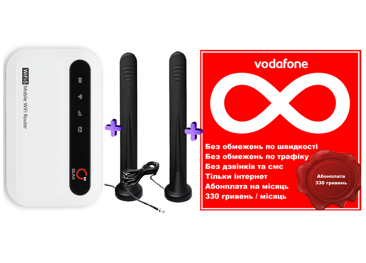 Роутер 4G Olax MF985 WIFI 3000mAh + дві автомобільні магнітні антени 8 dbi + сім Водафон безлім інтернет (750222)