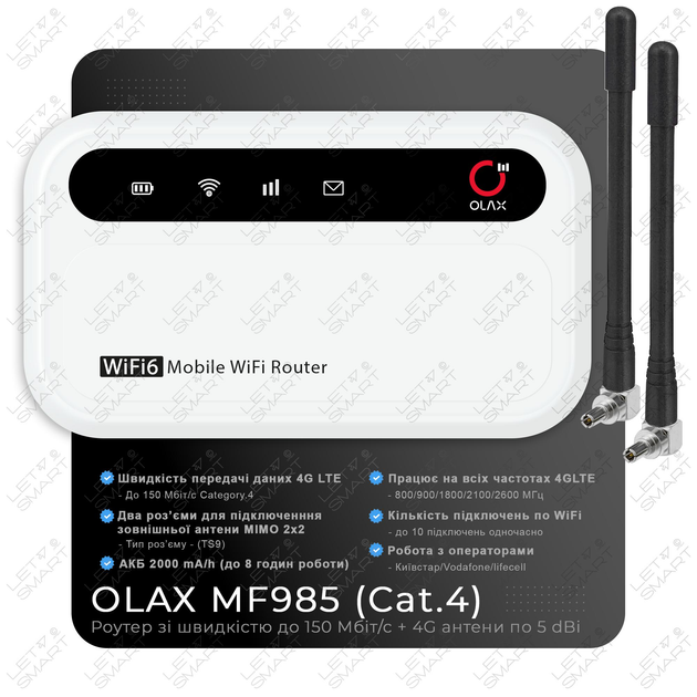 Мобільний маршрутизатор 4G модем/роутер Wi-Fi OLAX MF985 (Cat.4) з SIM-карткою. Сумісний з Київстар, Vodafone, Lifecell. До