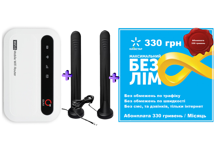Роутер 4G Olax MF985 WIFI 3000mAh + дві автомобільні магнітні антени 8 dbi + сім Київстар безлім інтернет (750223)