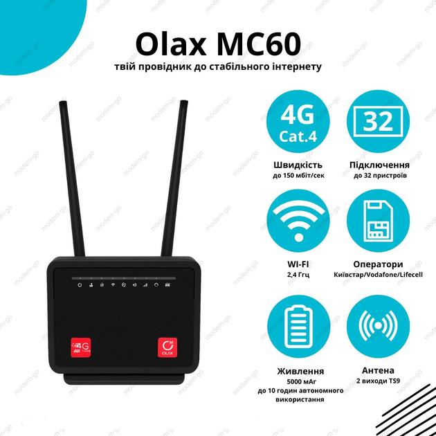 Універсальний стаціонарний 4G роутер WI-FI 3G/4G LTE OLAX MC50 Київстар, Vodafone, Lifecell