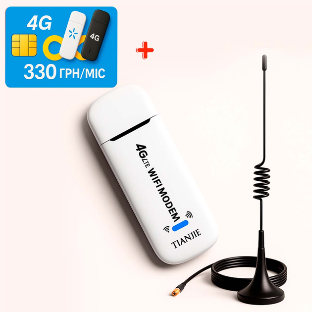 Високошвидкісний 3G/4G LTE USB Wi-Fi модем-роутер TianJie 3 в 1 і автомобільною антеною 7 dBi + Оплачений 1 місяць безлімітн