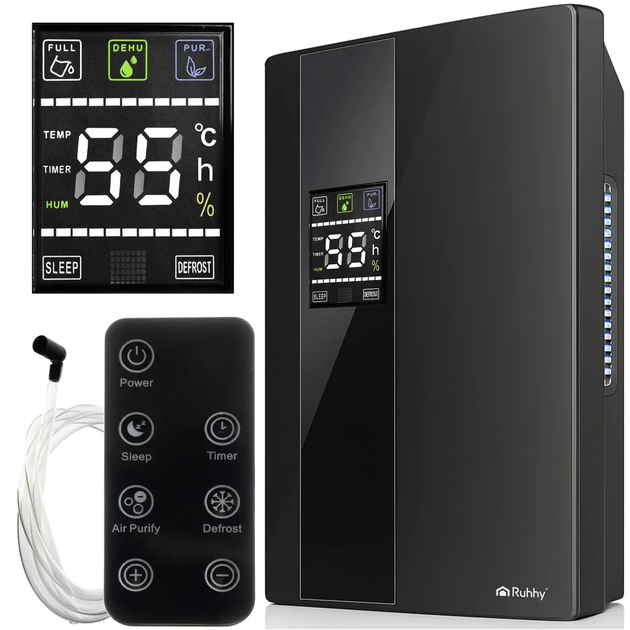 Осушувач повітря для квартири RUHY 2в1 очисник повітря 90 Вт 2 л поглинач вологи для дому з пультом і таймером Чорний