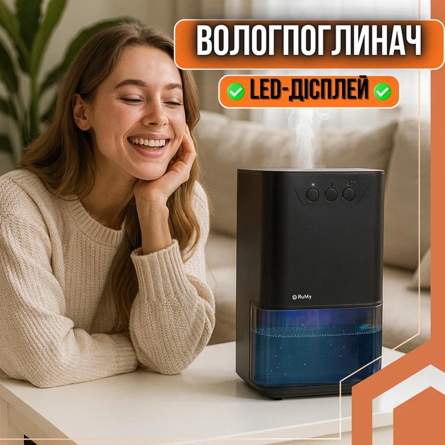 Осушувач повітря безшумний із LED-підсвіткою дисплеєм для дому квартири спальні якісний поглинач вбирач вологи універсальний