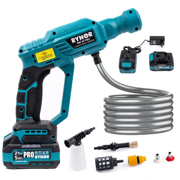 Акумуляторна безщіткова мийка Rynor RW30 PRO (21V 5Ah 36 бар) Ручна АКБ автомийка Райнор з дисплеєм