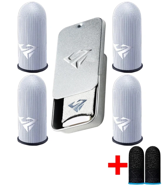 Ігрові напальчники Shezi S03 4 шт ультратонкі сенсорні зі скловолокна + 1 пара подарункових напальчників + білий металевий к