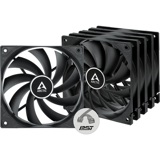 Набір вентиляторів для корпусу 120 мм Arctic F12, 5 шт, гідродинамічний підшипник, чорний