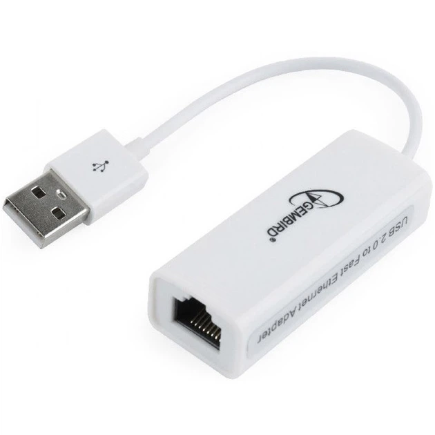 Мережевий адаптер USB 20 to Ethernet з кабелем швидкість до 100 мбітс чіп RTL8152B колір білий упаковка blister box