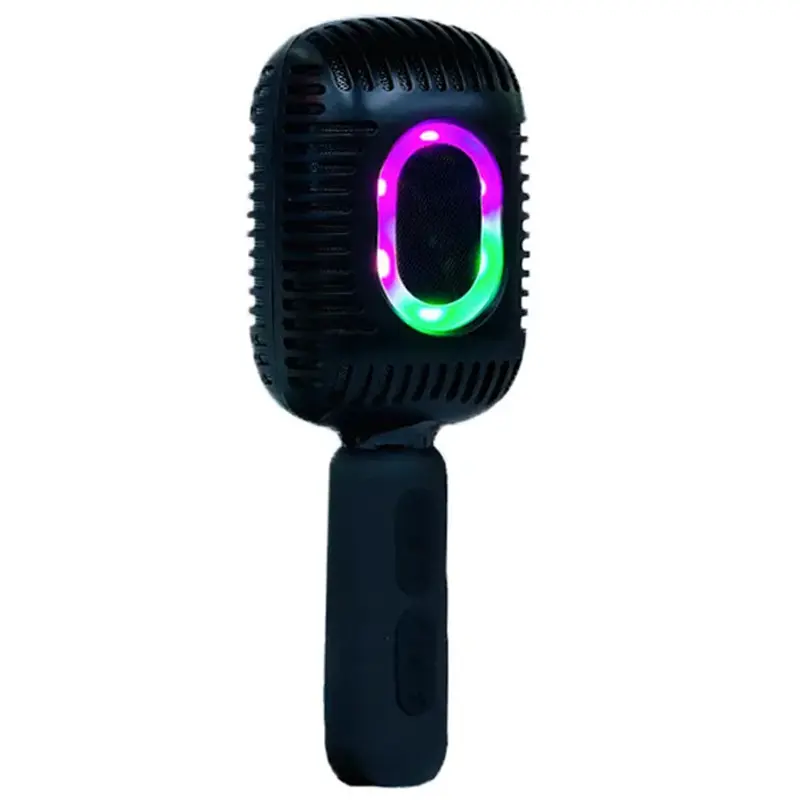 Бездротовий мікрофон — це чудовий пристрій для любителів караоке та музичних вечірок. Модель оснащена бездротовим модулем Bluetooth, FM радіо, слотом USB, TF і microUSB для читання/трансляції музичних файлів. Всі елементи підключення розміщені в нижній частині рукоятки мікрофона, а елементи управління зручно розташувалися на ручці прямо під великим пальцем. Ручна караоке система має