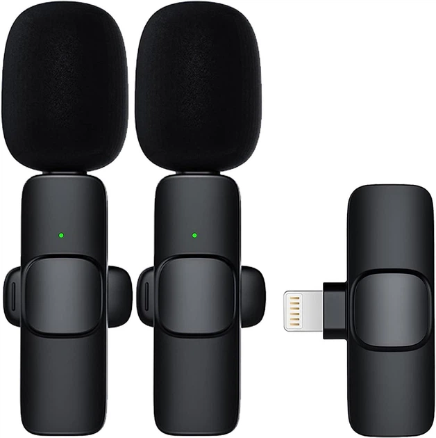 Бездротовий подвійний мікрофон петличний для телефону Iphone (Lightning), не вимагає ручного налаштування, Чорний
