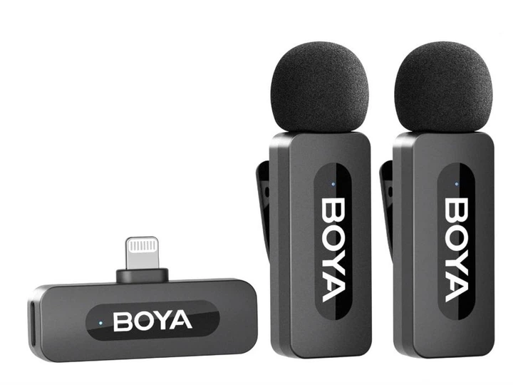 Петличний бездротовий подвійний мікрофон BOYA BY-V2 2.0 для iPhone iPad з роз'ємом Lightning 2.4 GHz чорний