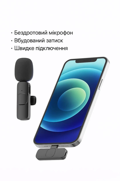 Бездротовий петличний мікрофон K8 для смартфона з адаптером Lightning Type-C (IOS, Android)
