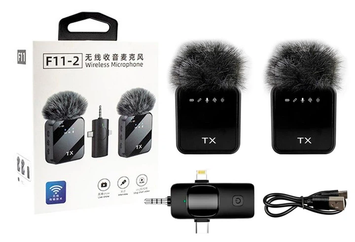 Бездротовий петличний мікрофон F11-2 подвійний з під'єднанням 3,5 мм, Type-C, Lightning